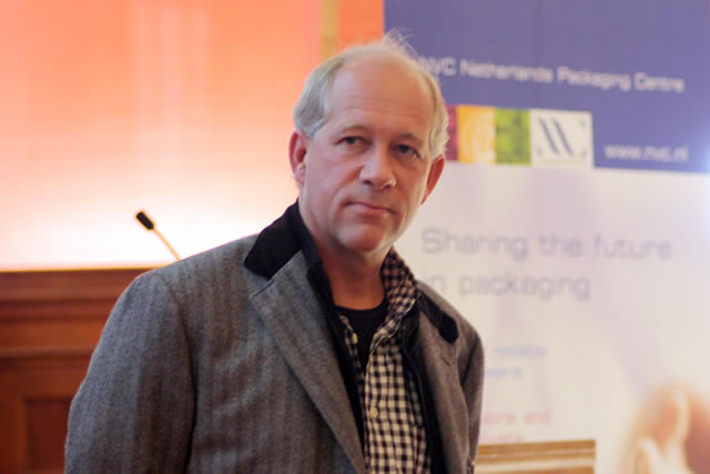 Prof. Paul Iske presenteerde de drastische groei van alternatieve financieringsmethodes tijdens zijn keynote presentative: Bye Bye Banks! Crowdfunding as accelator for innovation in packaging (Foto: Lody van Berkel, Packonline.nl)