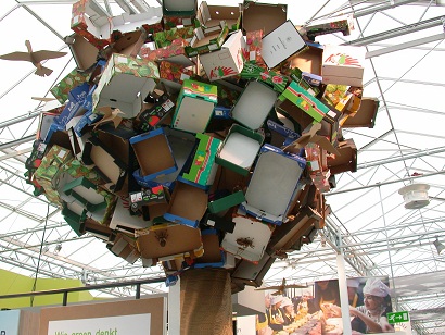 Eén van de blikvangers op de Floriade in Venlo dit jaar: een kanjer van een boom, meer dan 5 meter hoog en 50cm diameter springt eruit in het paviljoen "Huis van de Smaak". Een sterk staaltje ‘creativiteit met je eigen product’ van de verzamelde golfkartonproducenten uit België en Nederland. Hiermee brengen ze de kwaliteiten van golfkarton als beste en duurzaamste verpakking voor groenten en fruit prominent naar voren. Over golfkarton als duurzame verpakking kan een stevig boompje worden opgezet. Tijdens de Floriade worden in samenwerking met groenten- en fruitorganisaties speciaal retailers uitgenodigd. Zij kunnen kennismaken met de vernieuwende mogelijkheden en de verkoopbevorderende werking van duurzaam golfkarton, bijvoorbeeld als tray en als "shelf ready packaging" (Persbericht Verenging Golfkarton,18 april 2012).